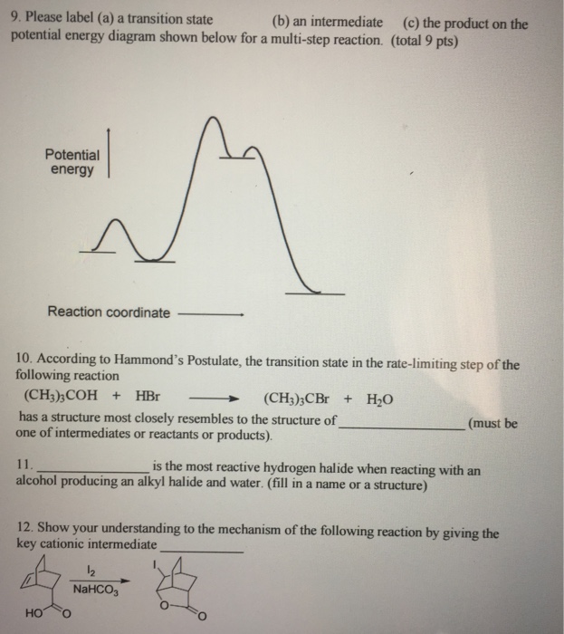 Label the energy diagram for a two step reaction. I need the actual answer for the rate constant number and the units please. Each step has its own delta h and activation energy. In the s n 1 reaction the carbocation species is a reaction intermediate. The transition states are located at energy maxima. Label the energy diagram for a two step ...