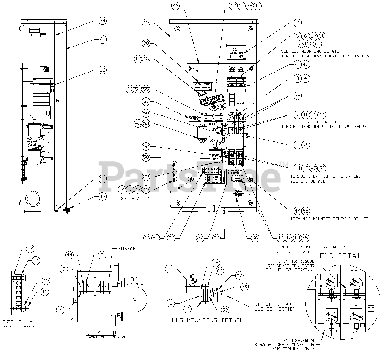 Generac Rtse200a3 Generac Power Transfer Switch Sn 5576716 5576940 2009 200a Transfer Switch Assembly 0h1710 C Parts Lookup With Diagrams Partstree