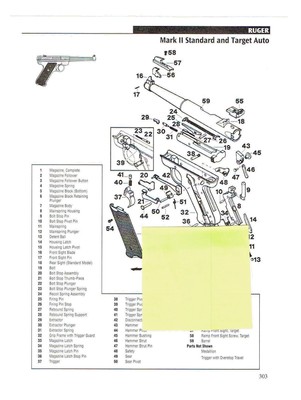 MGW stocks thousands of both Ruger OEM gun parts as well as performance upgrades from many well-known manufactures. Ruger parts for pistols like the popular LC9 series and SR series pistols as well as many parts for the Mark Series pistols and more. Ruger Rifle parts such as the ever popular 10/22, 77 and 96 models, the Ruger Mini-14 and Mini 30 platforms as well as todays Ruger American Rifle ... Ruger Mark 2 Schematic. Find parts for a Ruger Mark 2 in this easy-to-understand schematic. These gun diagrams will help you better understand how your firearm is assembled with links to the gun parts for easy check out. Mark 2.