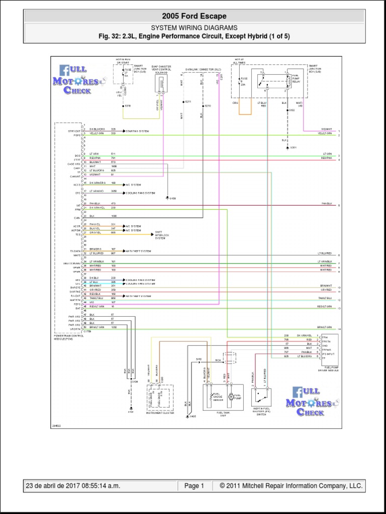 2005 Ford Escape Hybrid. 2005 SYSTEM WIRING DIAGRAMS Ford - Escape. ENGINE PERFORMANCE 2.3L. 31 августа 2012 12:50:05. 12:49:53 Page 1 © 2011 Mitchell ...