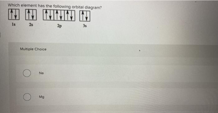 Select the correct orbital diagram for this element. Q. Choose the correct Lewis Dot diagram for NaCl. answer choices . Tags: Question 16 . SURVEY . ... which of the above orbital diagrams is the best representation of electrons in an unexcited atom? ... Which statement below accurately describes the elements in Group 16 of the Periodic Table as considered from top to bottom? The electron configuration of an atom is 1s 2 2s 2 2p 6. The number of electrons in the atom is. answer choices. 3. 6. 8. 10. Tags: Question 18. An orbital diagram is a different way to show the electron configuration of an atom. It symbolizes the electron as an arrow in a box that represents the orbital. The orbital for a hydrogen atom: (is a box with 1s under it and an H next to it. It has one arrow in it facing up) answer choices. The physical and chemical properties of elements are periodic function of their atomic weights. When elements are arranged in ascending order of their atomic weights, every eighth element had similar physical and chemical properties and resembled the first element just like the eighth note of an octave of music resembles the first.