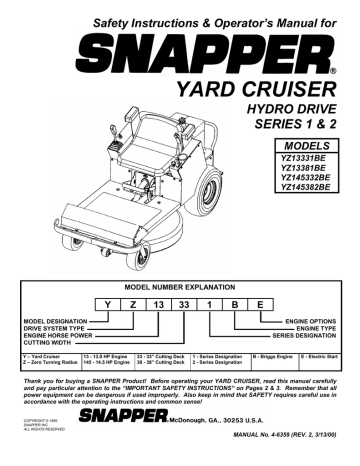Replace the plug and fill your riding mower engine with oil. , is recalling about 1,160 Snapper Rear Engine 33” Riding Mowers. Have to hold it in Reverse - Rear engine Snapper, 04 year model. Nothing flashy, just all the information you need for a co mplete repair and or rebuild of your Snapper at a fraction of the cost of a paper manual.