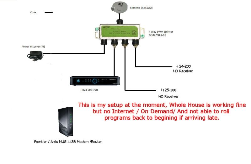 I purchased a directv broadband deca unit on ebay DECABB1MR0-01. Now I need help installing it because I have no clue what I'm doing. I've read several other posts but still can't figure it out. I've attached a diagram of my setup its not complicated. The diagram lists my equipment models, etc. Thanks for your help!!!