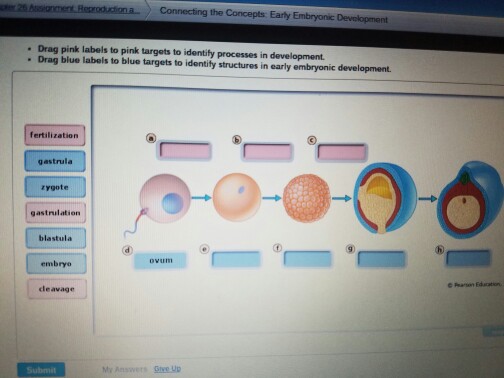 Drag blue labels to blue targets to identity structures in early embryonic development. This problem has been solved! See the answer ...