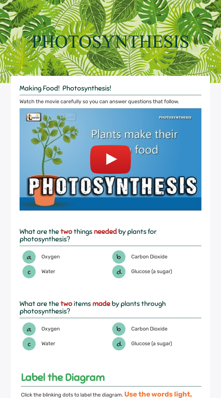 Photosynthesis diagram worksheet answer key. 4th grade photosynthesis diagram worksheet. Label the photosynthesis diagram. Help your budding naturalist to learn about photosynthesis this helpful diagram will make a complicated process seem like a breeze plus she ll get to fill in the blanks in the paragraph below. Option c is oxygen which is the right answer. Real science, real stories, and real data to engage students in exploring the living world · This film begins with phenomena linked to climate change and then examines how Earth’s temperature is controlled, how we know it is changing, and how the current changes compare to those over the ... Share free summaries, past exams, lecture notes, solutions and more!! Free essays, homework help, flashcards, research papers, book reports, term papers, history, science, politics