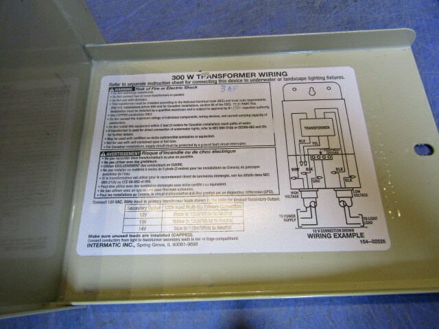 Intermatic 300 Watt Transformer Px300 Inyopools Com. Think about the layout of the lighting. Low voltage lighting transformer wiring diagram. Daytime line voltage at 130 volts in giving 13 volts out of the transformer and 10 volts at the lamps can change at night to 120 volts in giving 12 volts out of the transformer and 9 volts at the lamps.