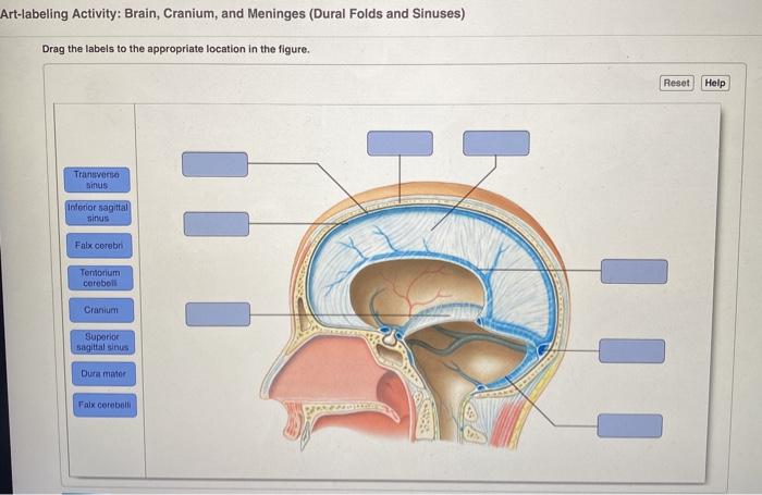 View Screen Shot 2019-02-05 at 8.26.00 PM.png from BSC 2086L at University of South Florida. Drag the labels onto the diagram to identify the cranial meninges and associated structures.