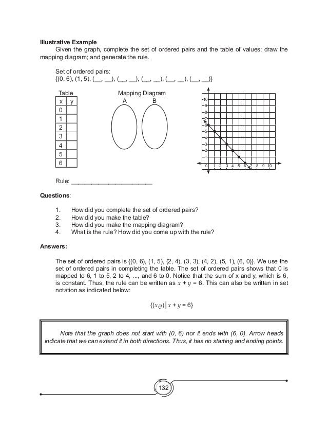 Find step-by-step Algebra solutions and your answer to the following textbook question: Identify the domain and range of each relation. Use a mapping diagram to determine whether the relation is a function. {(3, 7), (3, 8), (3, -2), (3, 4), (3, 1)}.. Definition Of Mapping The idea of pairing each member of the domain with each member of the range referred to as mapping. Examples of Mapping The figure shows a mapping of the elements of the domain to the elements of the range. Each element in the domain is increased by 1 to get the corresponding element in the range. Examine whether the following mapping diagram represents function or not, find its domain, range and co-domain. Solution : Every element of A is associated with exactly one element in B.