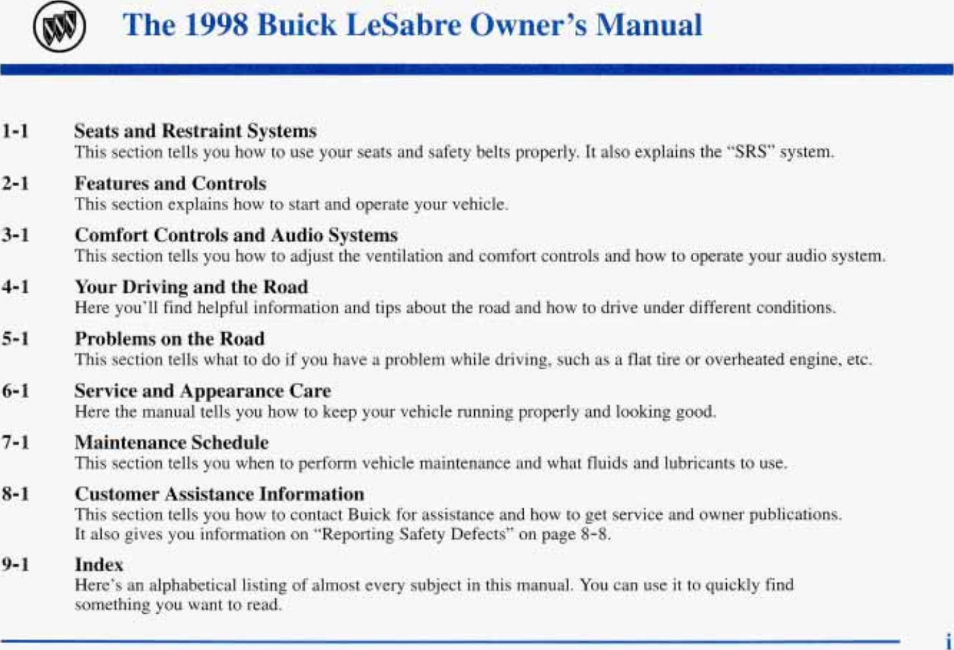 Edmunds' expert review of the Used 1998 Buick LeSabre provides the latest look at trim-level features and specs, performance, safety, and comfort. ... starter, left ball joint, serpentine belt ...