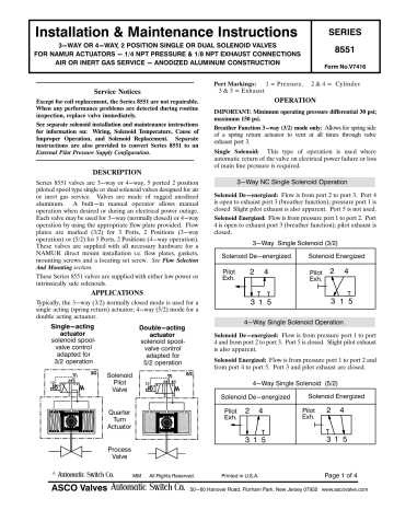 PDF Installation & Maintenance Instructions - ValinOnline.com oppositeseries number 8551 flow diagram label on valve body or facing solenoid "B" for dual solenoid construction. See Figure 3. for proper orientation of flow plate, gaskets, mounting screws and locating set screw. Then proceed as follows: