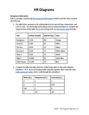 HR Diagram - Student Guide... / PDF4PRO Name: NAAP HR Diagram Explorer 1/9 HR Diagram Student Guide Background Information Work through the background sections on Spectral Classification, Luminosity, and the Hertzsprung-Russell Diagram . Then complete the following questions related to the background information.