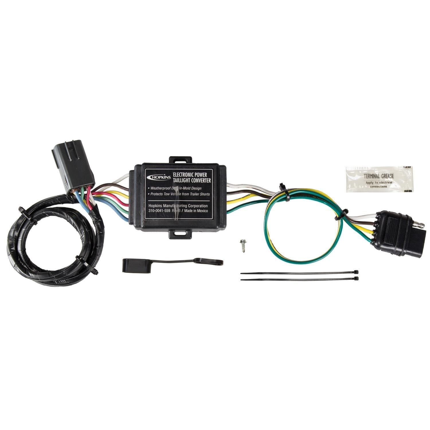 Hopkins 46155 Taillight Converter Universal Kit... - Amazon Canada Electronic taillight converters adapt an independent bulb taillight system of the tow vehicle to the common bulb taillight system of the trailer. Recommended for repairing a damaged taillight converter. Each unit can power 2 1 amps per stop / turn signal. Complete with splices and circuit tester.