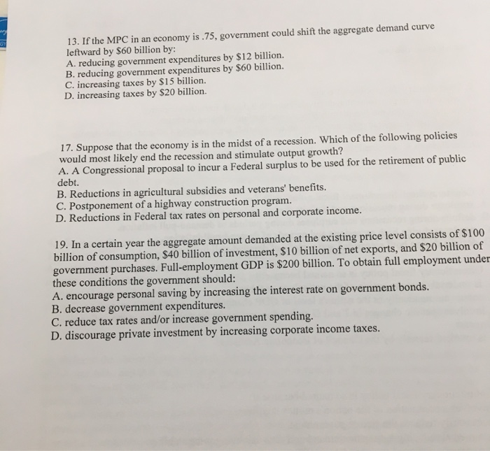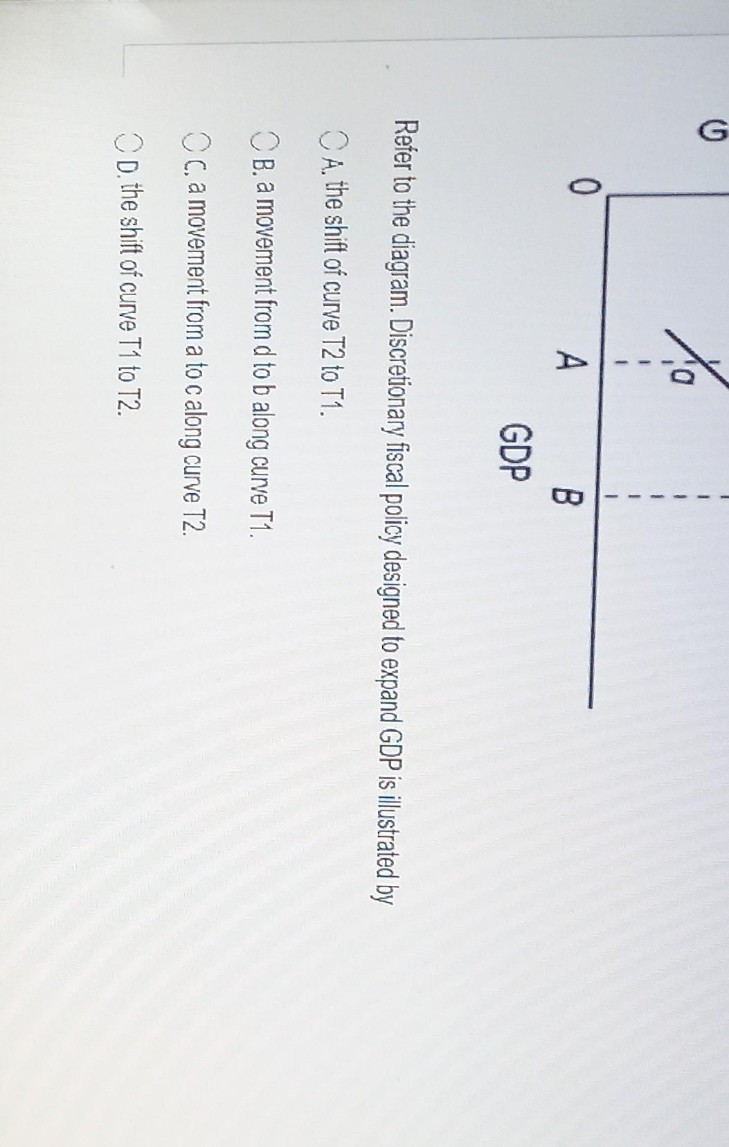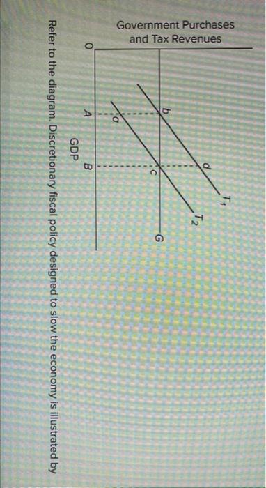 35 refer to the diagram. discretionary fiscal policy designed to slow the economy is illustrated by