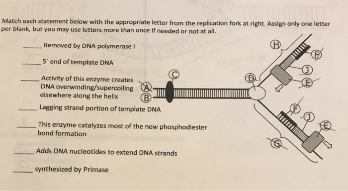DNA Replication Mechanisms - Molecular Biology of the Cell ... The structure of a DNA replication fork. Because both daughter DNA strands are polymerized in the 5′-to-3′ direction, the DNA synthesized on the lagging strand must be made initially as a series of short DNA molecules, called Okazaki fragments. (more...) The High Fidelity of DNA Replication Requires Several Proofreading Mechanisms DNA structure and replication review (article) | Khan Academy DNA is made differently on the two strands at a replication fork. One new strand, the leading strand, runs 5' to 3' towards the fork and is made continuously. The other, the lagging strand, runs 5' to 3' away from the fork and is made in small pieces called Okazaki fragments. Diagram of leading and lagging replication strands. DNA Replication Steps and Process - ThoughtCo DNA replication would not occur without enzymes that catalyze various steps in the process. Enzymes that participate in the eukaryotic DNA replication process include: DNA helicase - unwinds and separates double stranded DNA as it moves along the DNA. It forms the replication fork by breaking hydrogen bonds between nucleotide pairs in DNA.