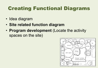 The Landscape Architecture Process: Schematic Design Phase ... Because it's focused on how the spaces in the landscape will be used, not so much what they look like, different landscape designers call this phase different names: Functional Diagrams, Spatial Relationships, Design Concepts, or Bubble Diagrams, for the loose circles we quickly sketch to indicate the general location of each function on the ...